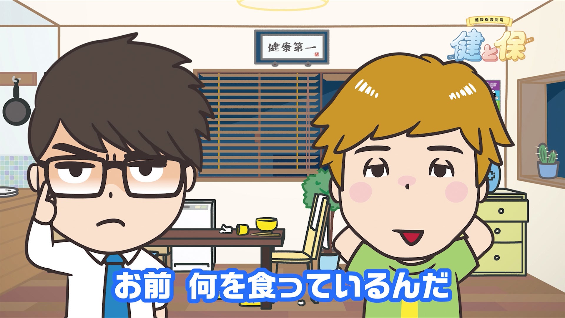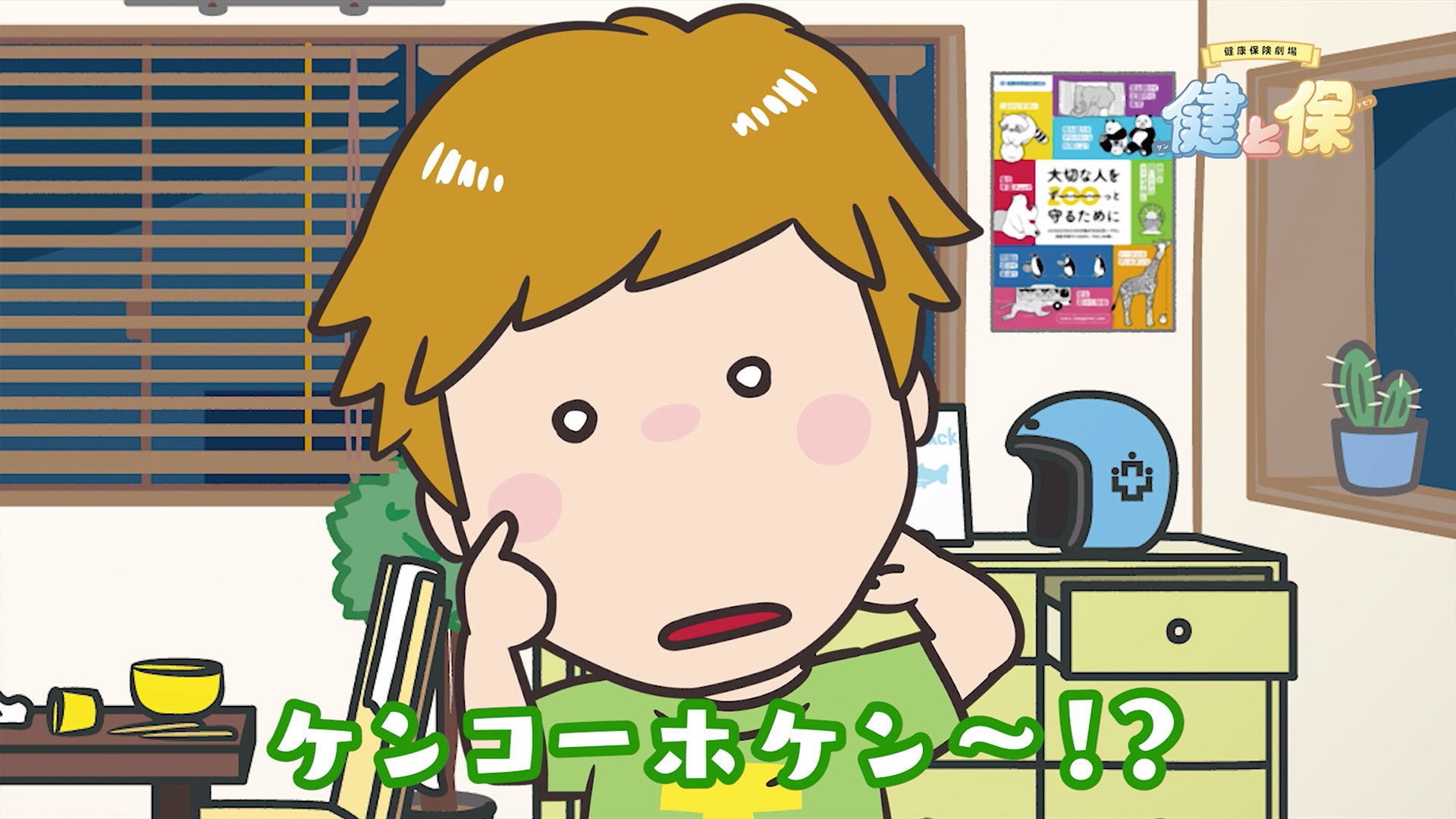 動画内に登場するのは梶裕貴さんが声優を担当する兄の「健(ケン)」と、山下大輝さんが声優を担当する弟の「保(タモツ)」の兄弟。兄弟の日常のひとコマを切り取った動画の中で、しっかり者で健康保険に詳しい健は、いつも楽観的でマイペースな性格の保に厳しくも優しく健康保険の仕組みや健康保険に関する知識を教えていきます。
