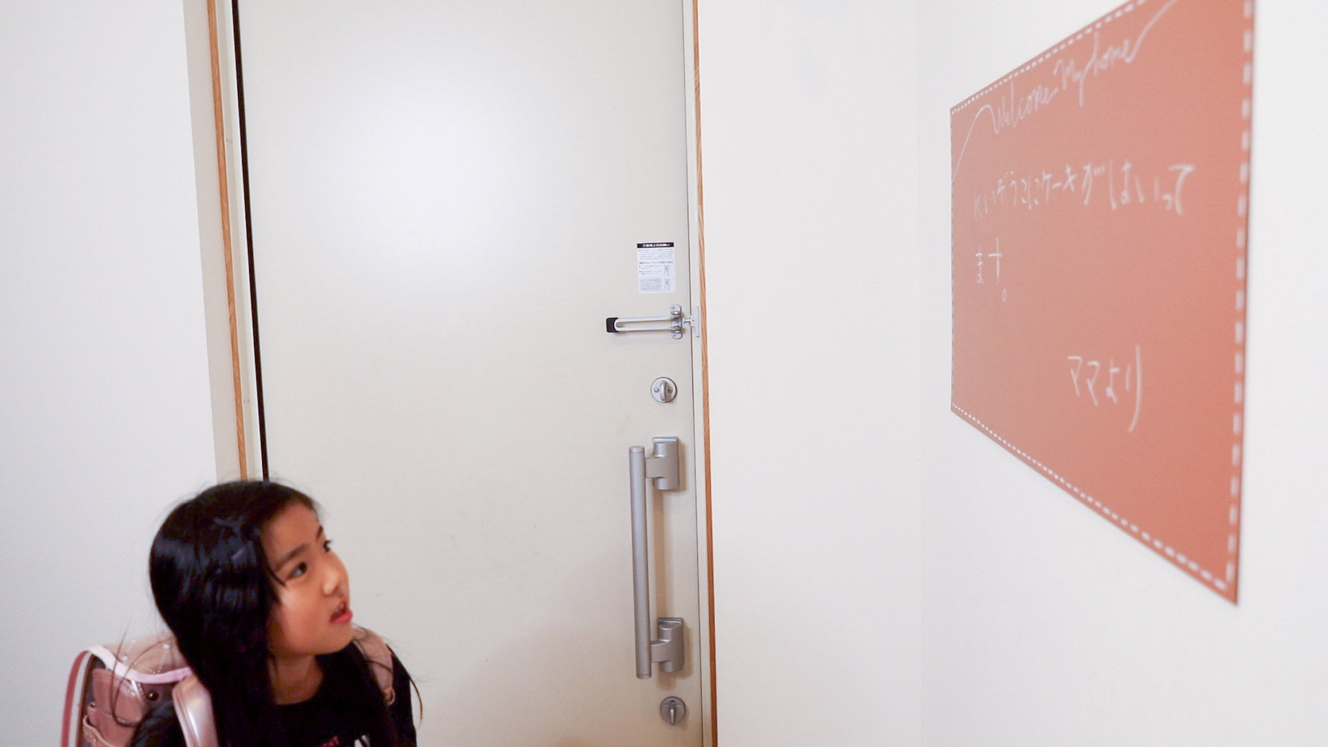 ③帰ってきたら必ず通る玄関。Re:Sketchを家族の伝言板として利用しましょう。フック付きのマグネットをつければ無くしやすい家や車の鍵をかけておくことも可能です。