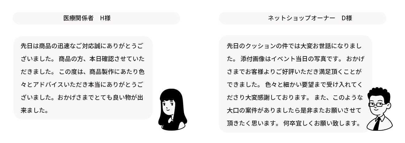 実際にご依頼いただいたお客様より、品質に関して次のようなお言葉を頂いております。