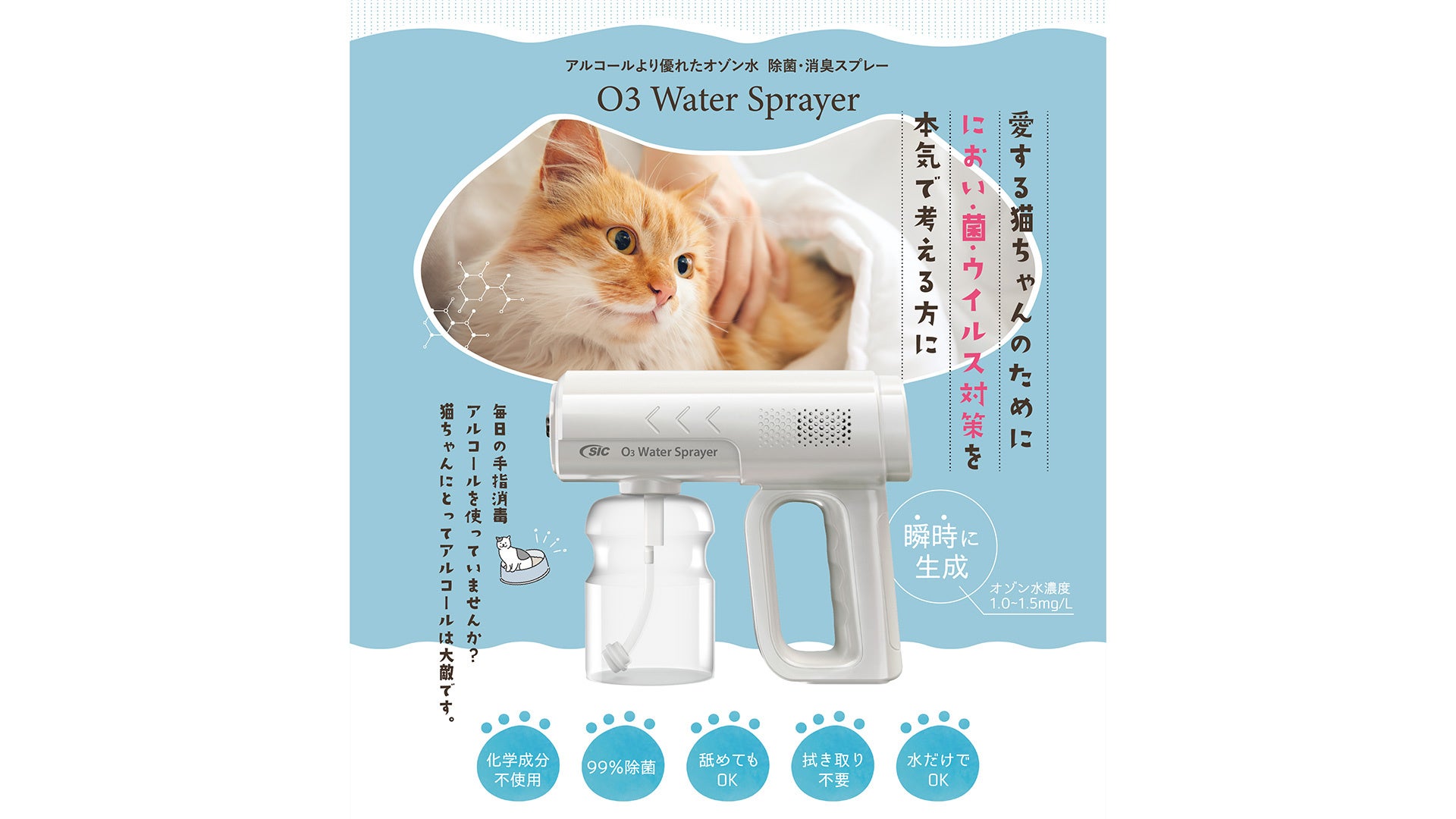 本製品は、水道水で高濃度オゾン水(1.0~1.5mg/L)の生成が可能な電動型オゾン水スプレーです。