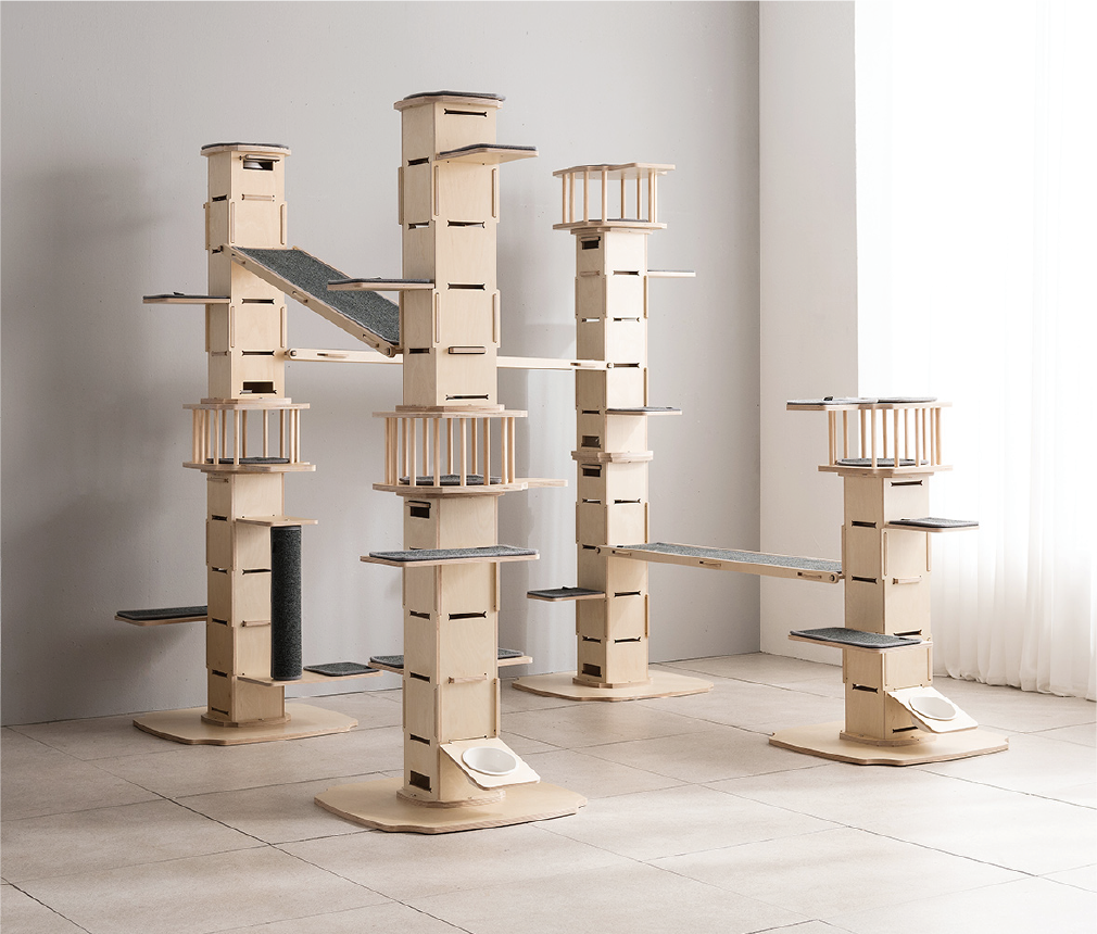 家具職人の情熱と猫の飼い主の愛情のもと、猫の習性を研究・観察し、2年以上の歳月をかけ試作を何度も繰り返すことでたどり着いた至高のキャットタワーです。