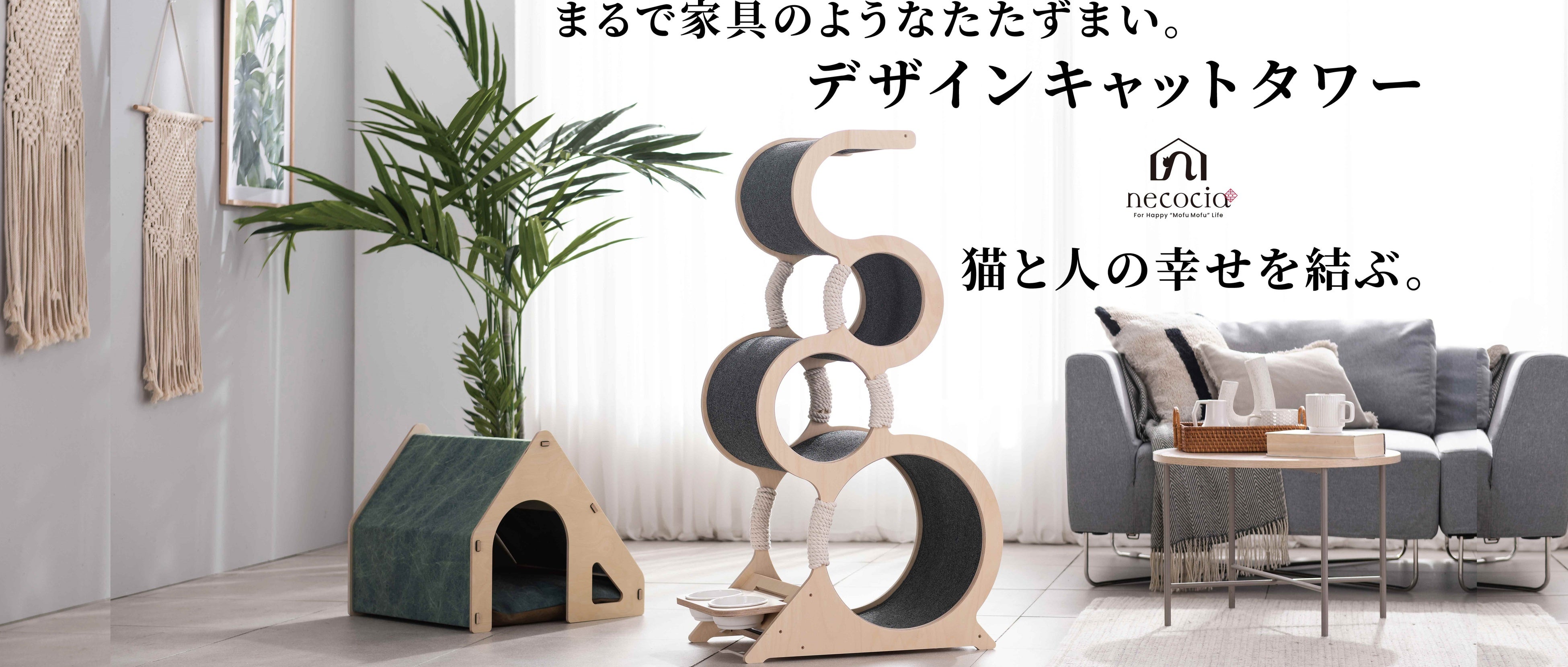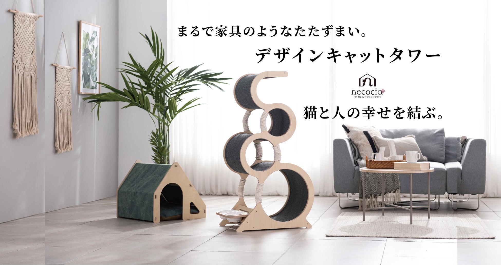 ネコシアのブースでは、『猫と人の幸せを結ぶ。』をテーマに、まるで家具のような「空間に馴染むデザインキャットタワー」や「電動型高濃度オゾン水生成スプレー」を取り扱っております。