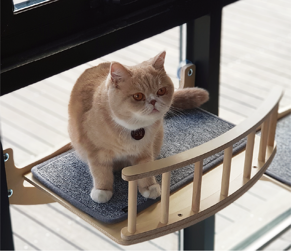 さらには、壁や窓などお好みの場所に簡単に設置可能で、気軽に模様替え感覚で再設置も可能な自由度の高いキャットウォークに仕上がっております。