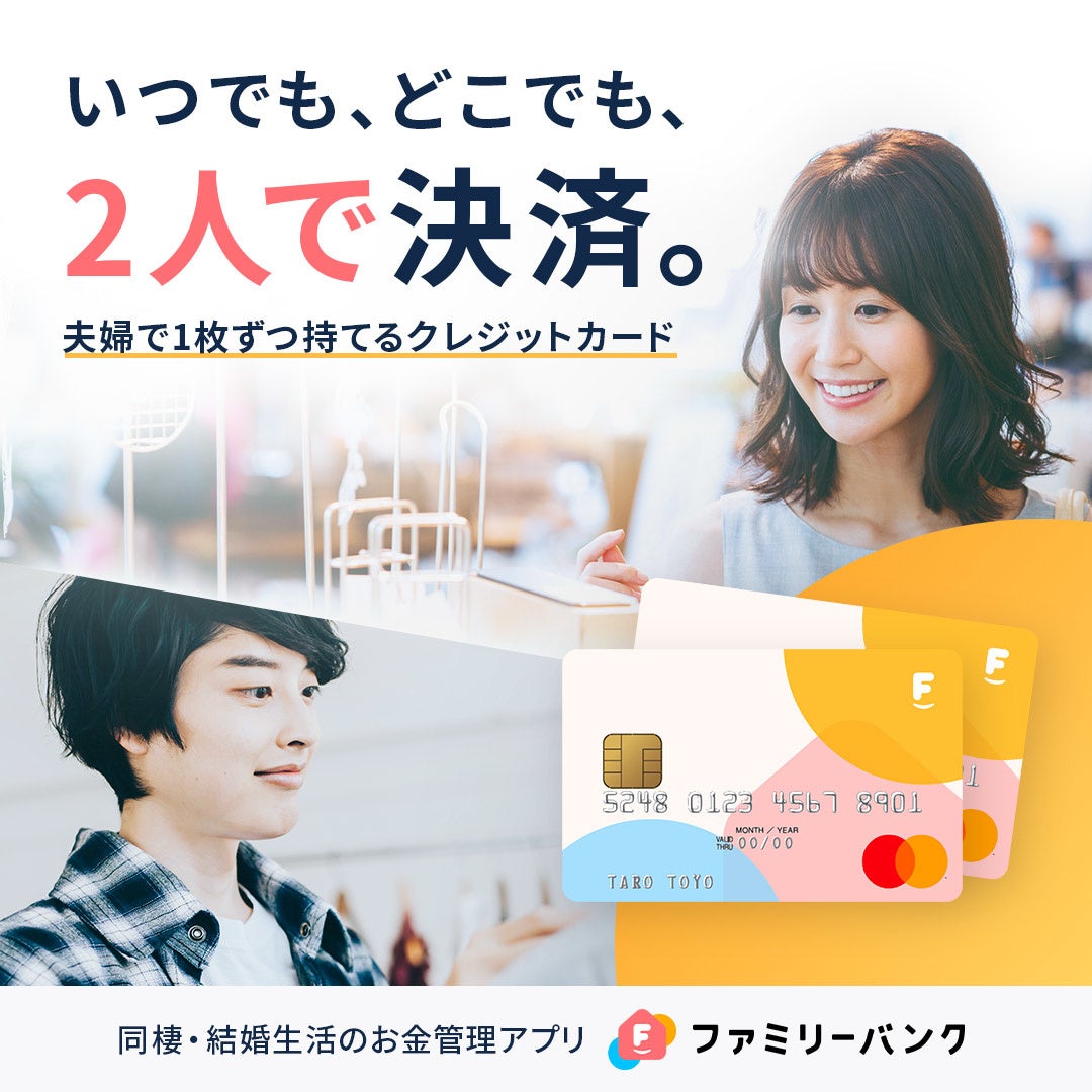 ファミリーテック株式会社(本社:東京都港区、代表取締役社⻑: 中村 貴⼀、以下「ファミリーテック」)と、株式会社オリエントコーポレーション(本社:東京都千代⽥区、代表取締役社⻑:飯盛 徹夫、以下:「オリコ」)は提携し、夫婦(別姓・同性パートナー含む)に最適なクレジットカード「ファミリーバンクカード」を発⾏いたしました。