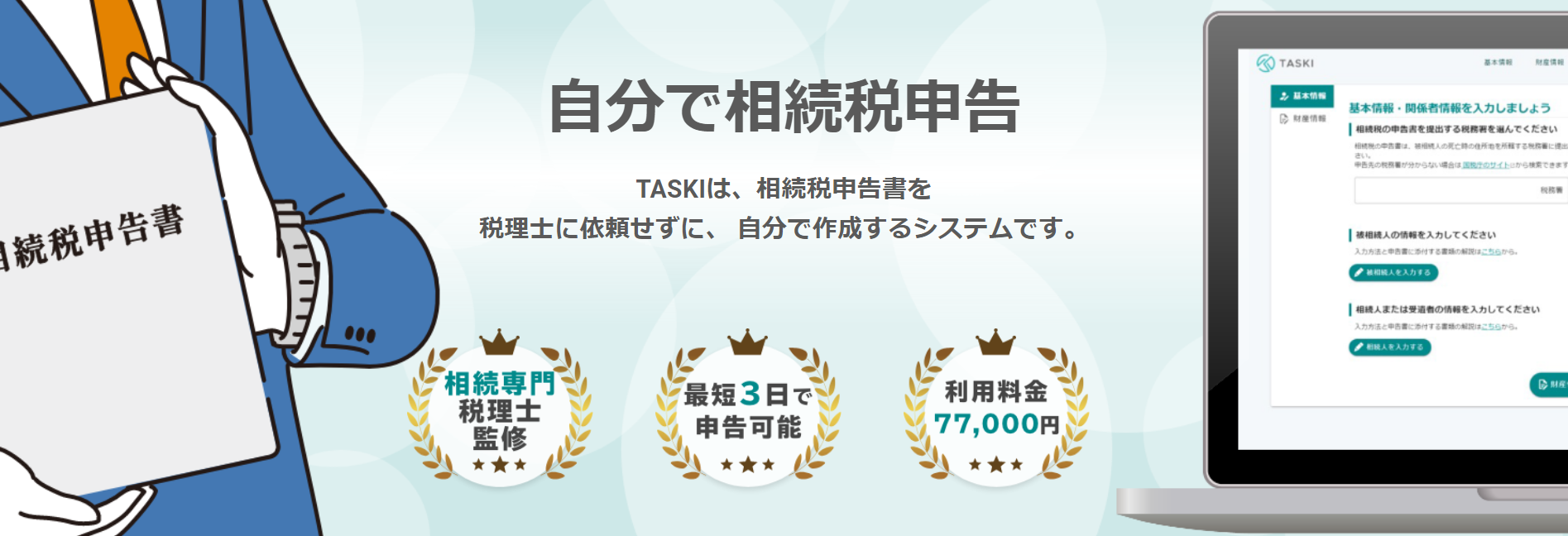 TASKI株式会社(本社:東京都千代田区、代表取締役:竹下祐史)は2022年3月1日、ご自身で相続税申告書が作成できる「TASKI(タスキ)」のシステムサービスの提供開始を予定しております。