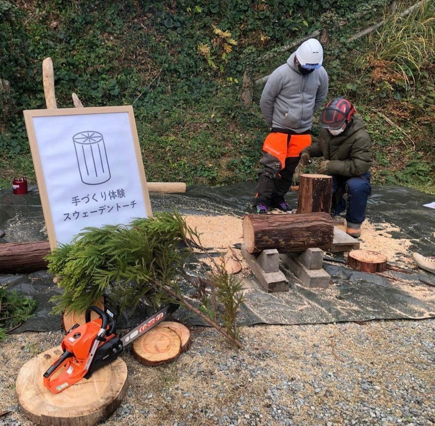 ▶︎体験プログラム 13:30~16:30(チェーンソーでスウェーデントーチ作り、魚さばき体験、料理教室等)