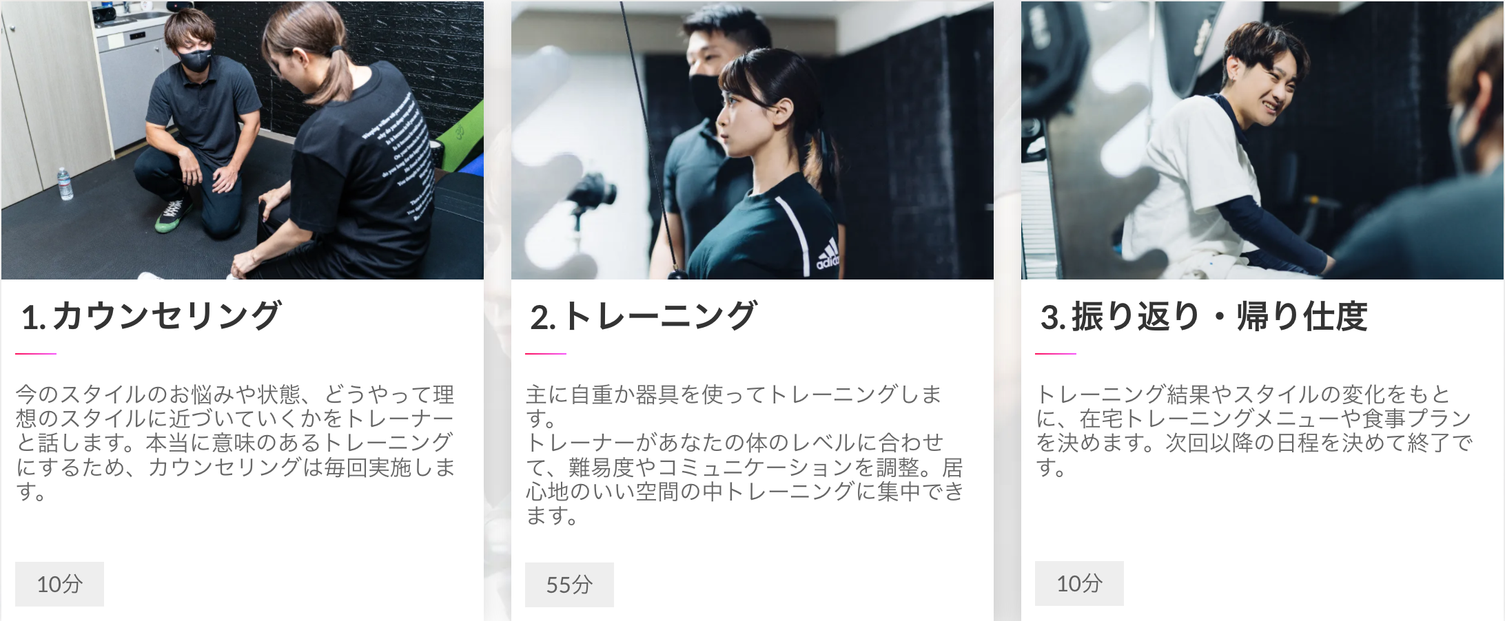通常、着替えから撤収までを60分で行うジムも多い中、本プランではトレーニングだけで60分を目一杯使い、脚・背中・胸・腕・肩・腹筋など身体の全てのパーツを満足に鍛えることができます。