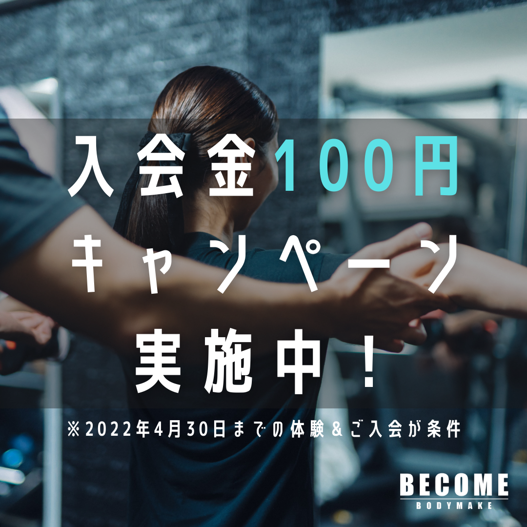 BECOME株式会社(東京都渋谷区渋谷1-9-4 代表:中島草太)は、ボディメイクを続けやすく挫折しないための新たな4つのプラン『サステナブル』『スタンダード』『エキスパート』『短期集中』を2022年3月1日よりリリースいたします。新プランのリリースに伴い、2022年4月30日までのご入会で入会金が11,000円から100円になるキャンペーンを実施いたします。