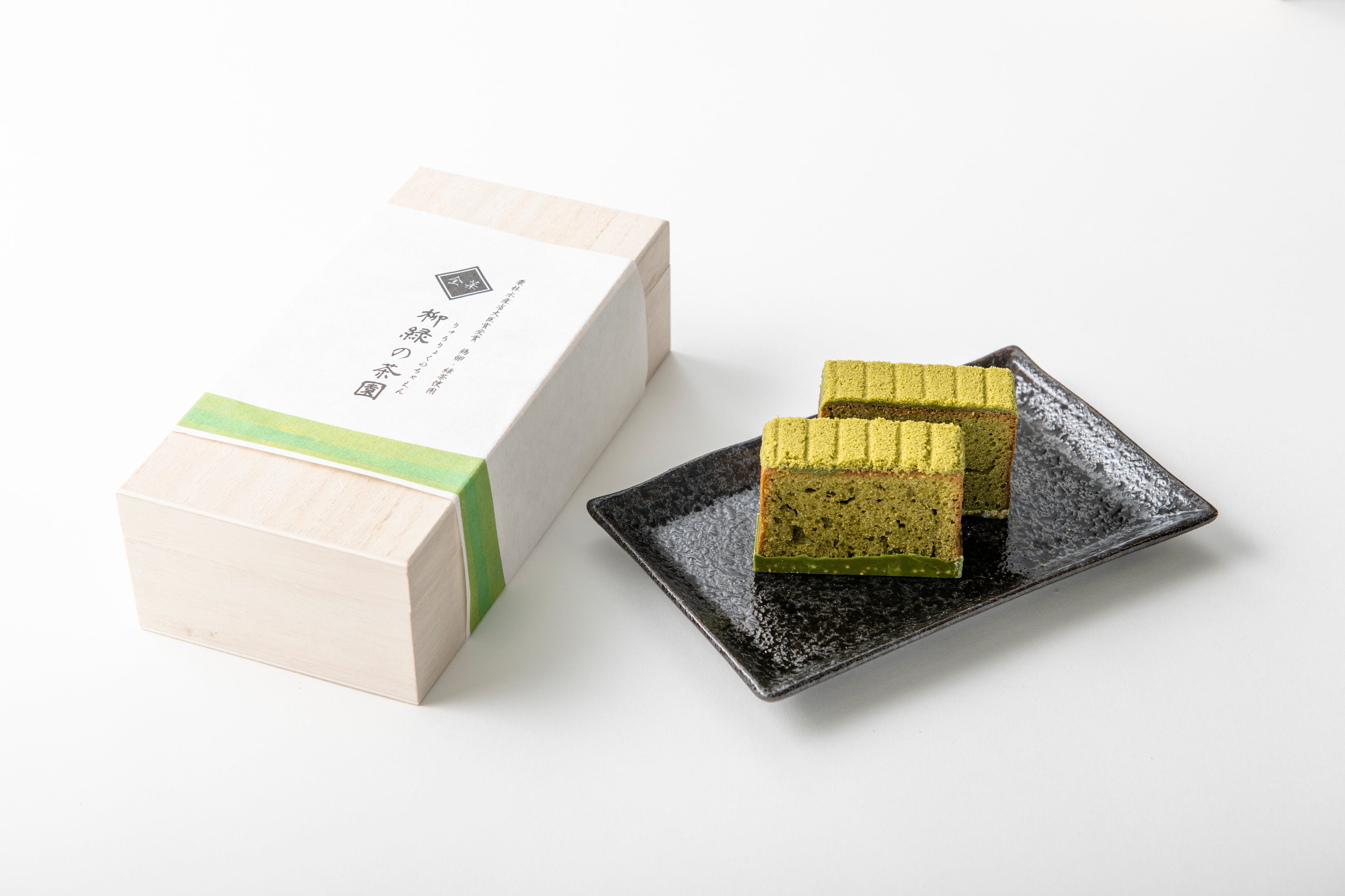 柳緑はお茶の緑を表現した伝統色ですが、語源は柳緑花紅という禅語がありあるがままの自然の春の風景を歌った言葉からきています。厳選された材料を使い新緑の狭山茶の茶園を写したケーキを表現しました。