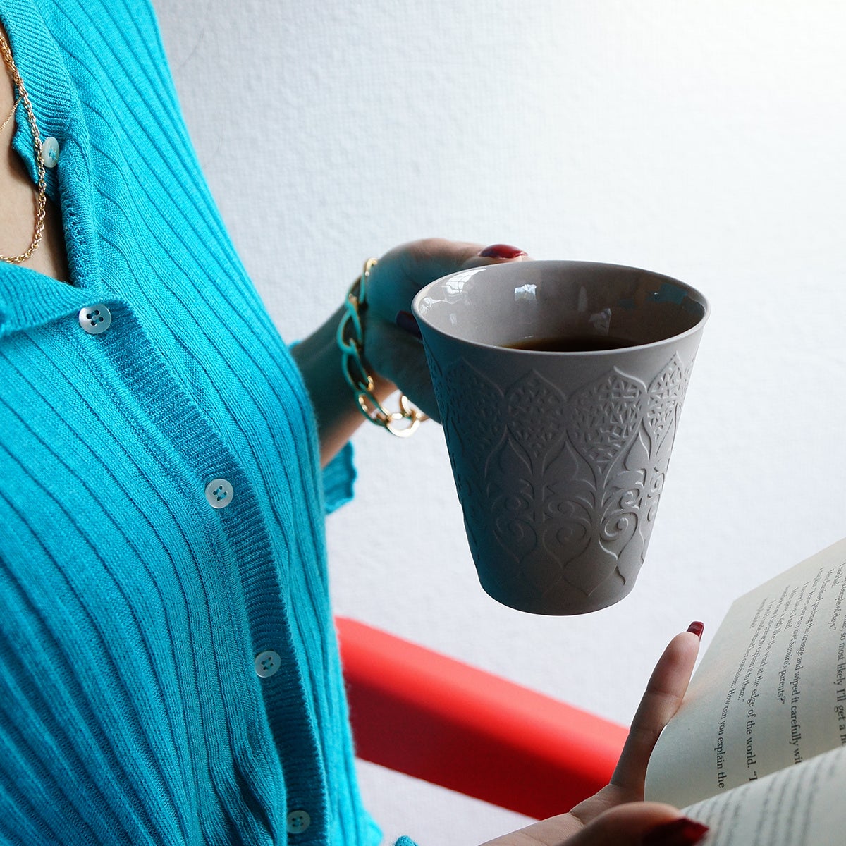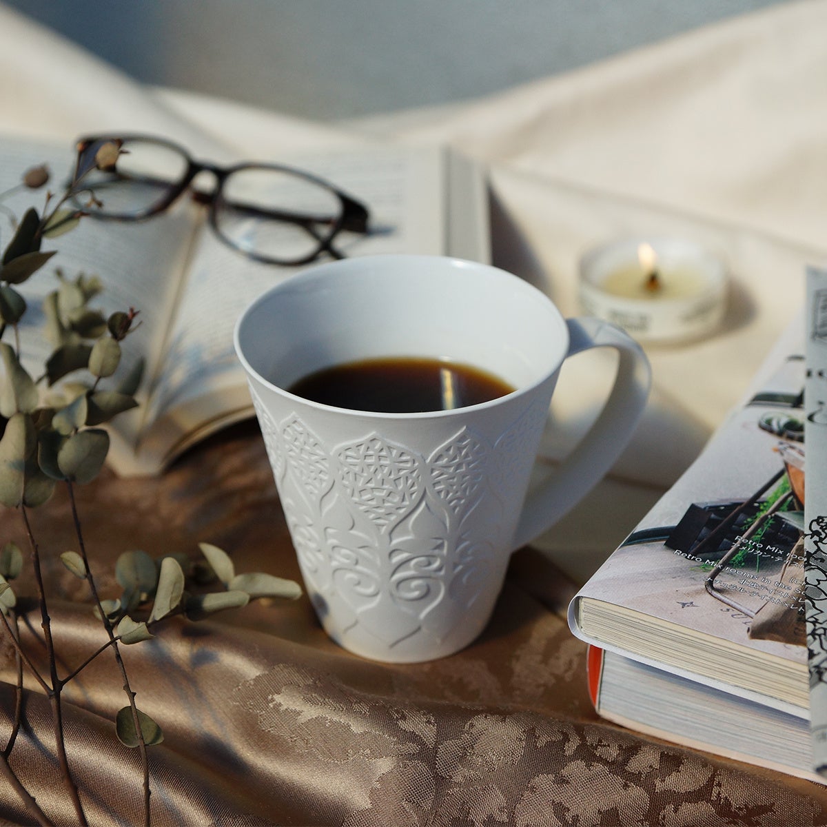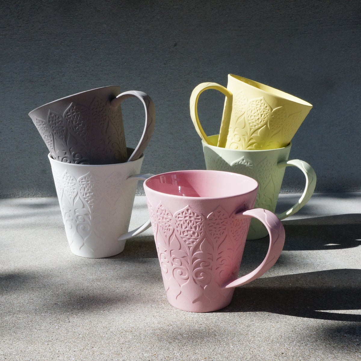 一日の始まりは美しいレリーフのマグカップ。心身共に息抜きできます!