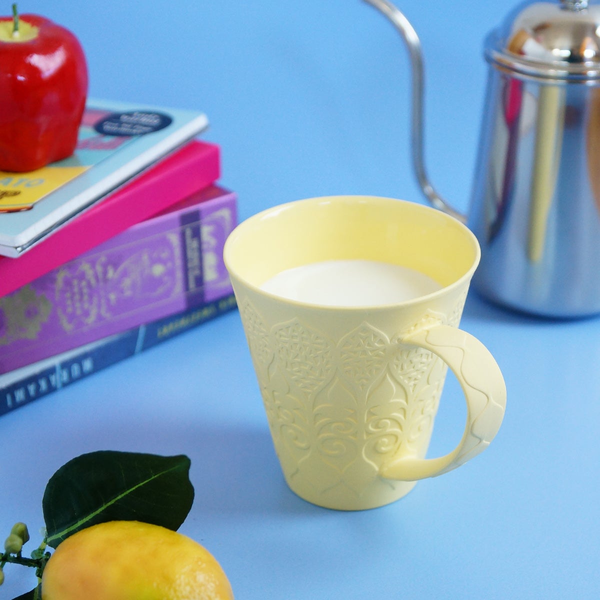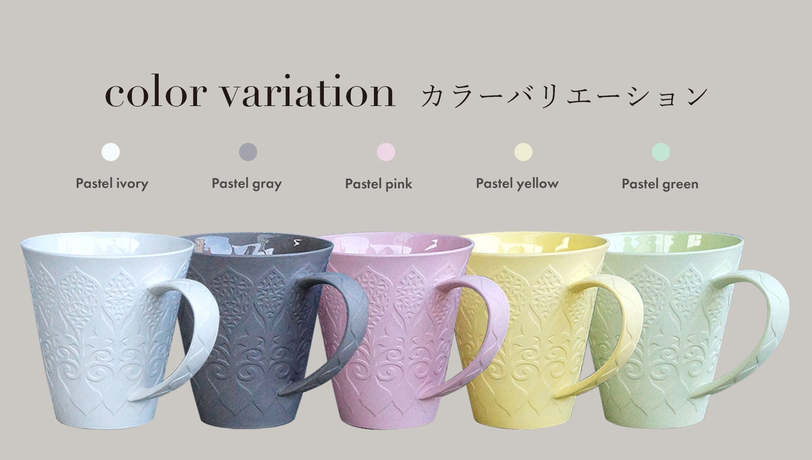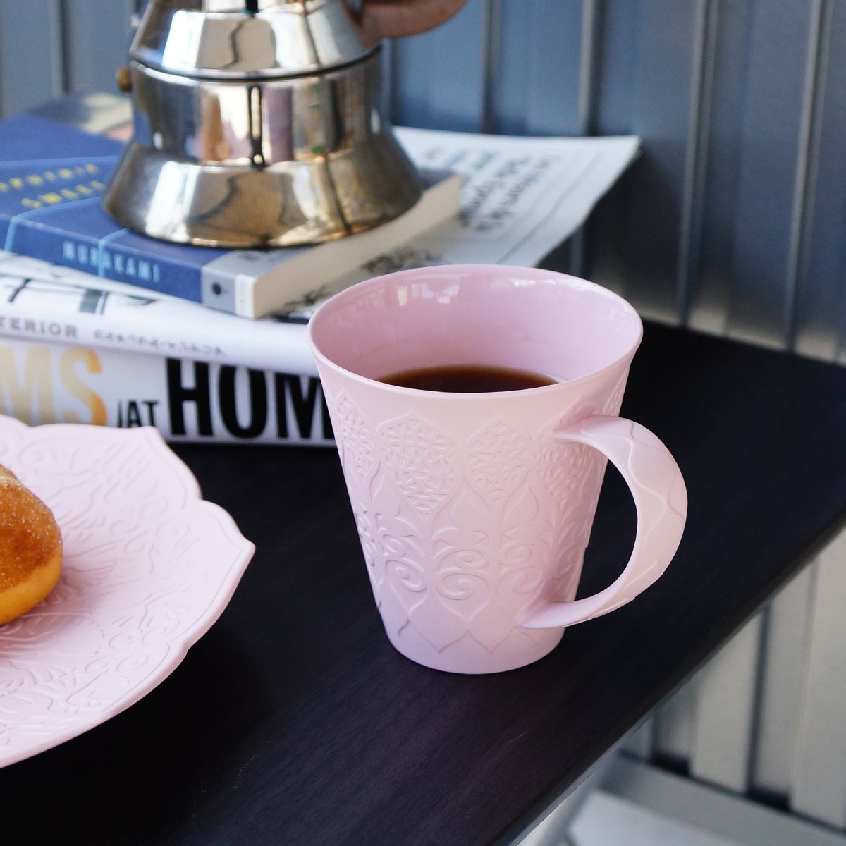 一日の始まりは美しいレリーフのマグカップ。心身共に息抜きできます!