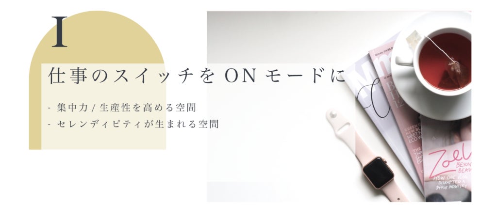 『DAY ON SALON』は 「Day Off(平日にとる休日)」の反対の意味を表す造語「Day On」と「忙しい毎日の中でスイッチを”ON”モードに切り替える」という意味を込めています。「ワタシを "ON" に」する空間やアメニティ、ドリンク&フードなどを提供することで、「忙しい女性の毎日を豊かにする、私らしい働き方を叶える」そんな場所にしたいと願っています。