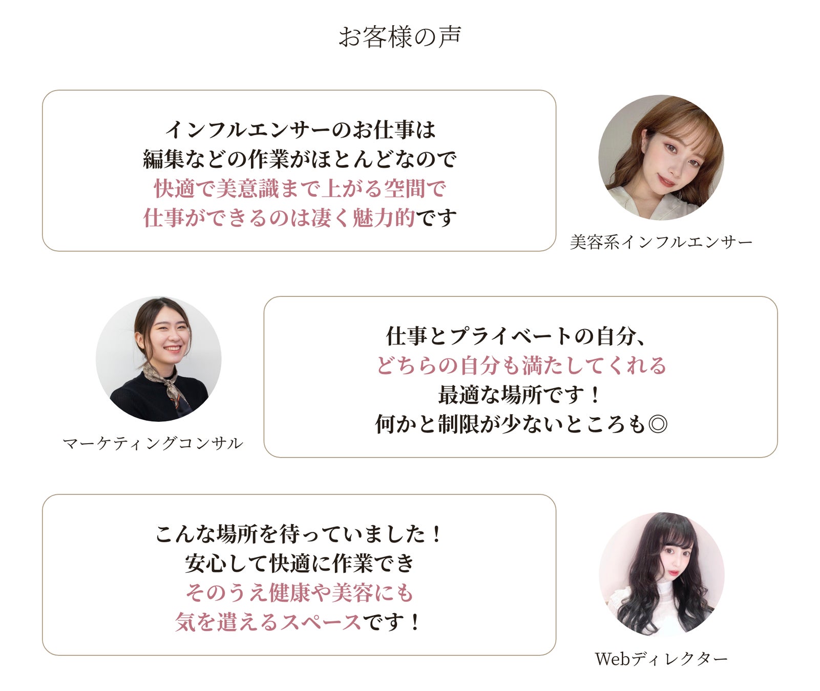 そこで、働く環境に女性の割合を増やすことでより女性がのびのびと働けるようになるのではないかと考え、DAY ON SALONは「女性限定」のコワーキングカフェにしました。