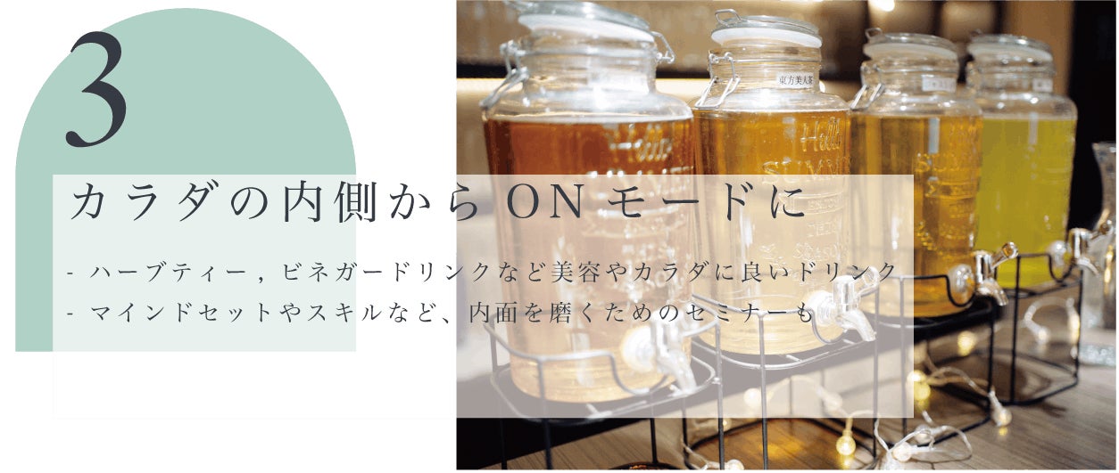 『DAY ON SALON』には、3つのスイッチを"ON"にする様々な仕掛けがあります。