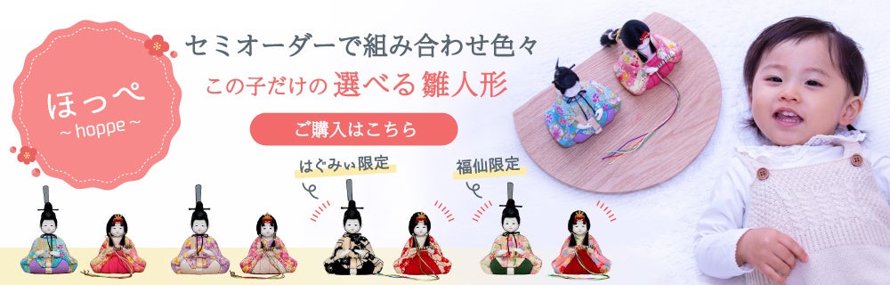 世界で1つだけのお雛様。お顔がとっても愛らしい。友達のようなお雛人形『ほっぺ〜hoppe〜』が誕生!セミオーダーも可能でお家時間をもっとHappyに♪