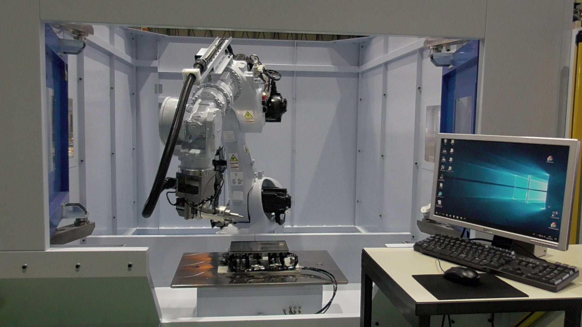 非接触センシング技術を使うため、大きさや形状、材質が異なるさまざまな加工対象物(ワーク)に対応可能であり、部品のバリ取りや研磨、溶接、シーリングなど多様な加工に利用が見込めます。