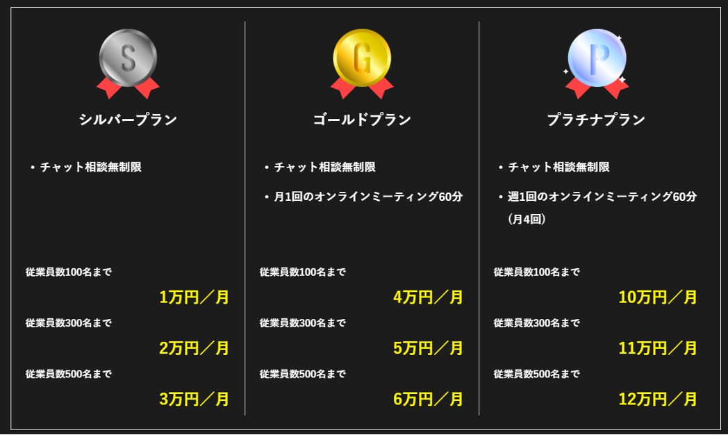 500名以下の中小企業様向けサービスとなっており、社員数に応じて金額が変動いたします。