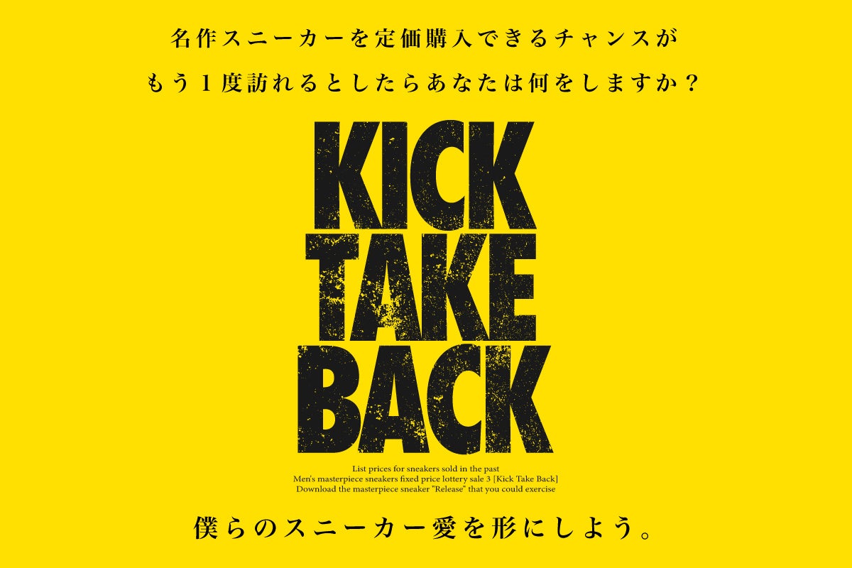 転売ヤーの増加によってスニーカー好きがスニーカーを手に入れるのが難しいこの状況で過去の名作スニーカー定価購入にもう一度チャレンジしワクワクして頂きたいという強い想いがこのKick Take Back(キック・テイクバック)のサービス立ち上げに至りました。