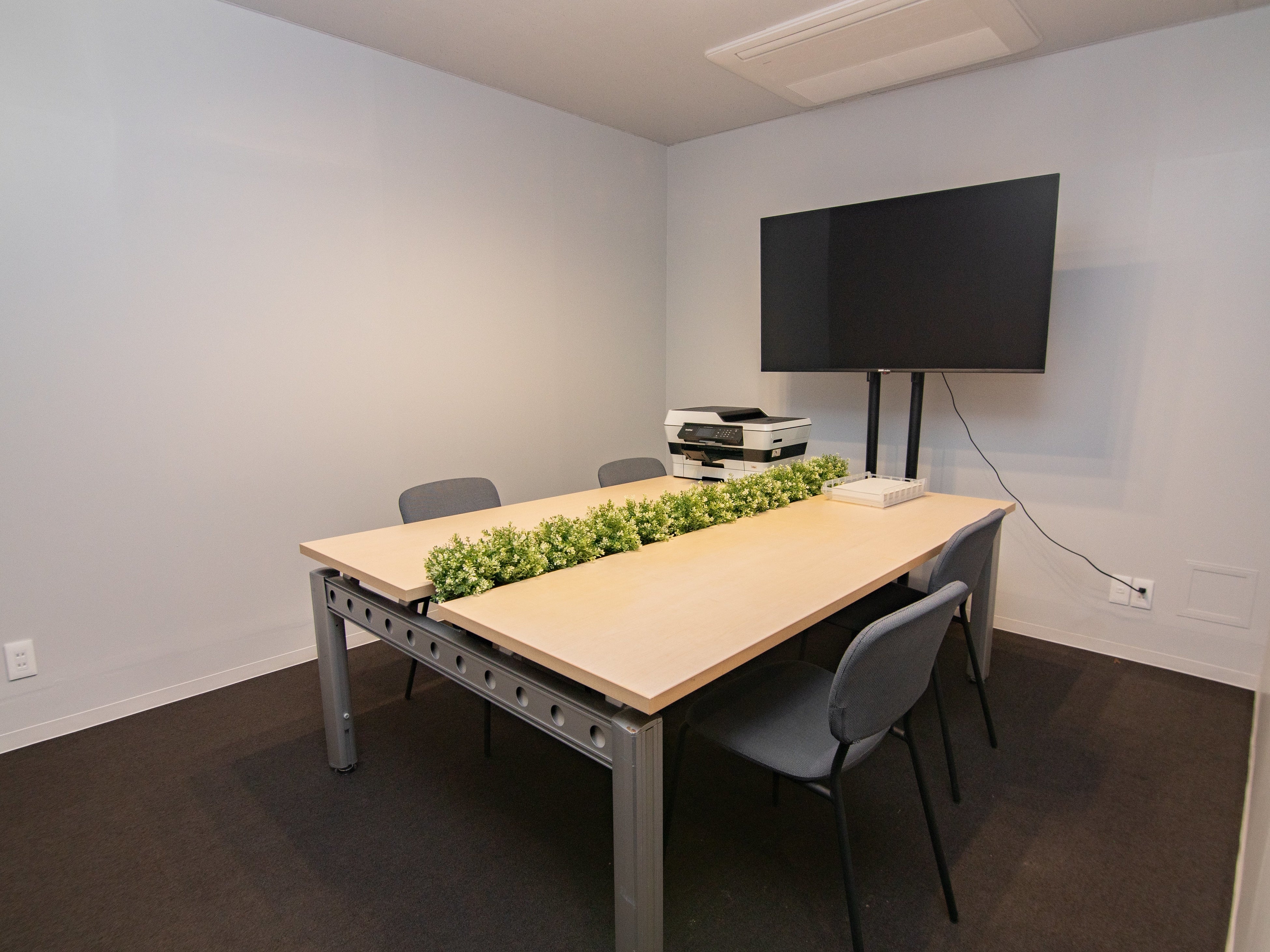 6~8名で利用できる会議室を1室、2~4名で利用できる会議室を2室完備しており、来訪者との打ち合わせ等に使用することも可能。プロジェクターや大型モニター・ホワイトボードも用意してあり、企業として必要なオフィス機能が備わっております。