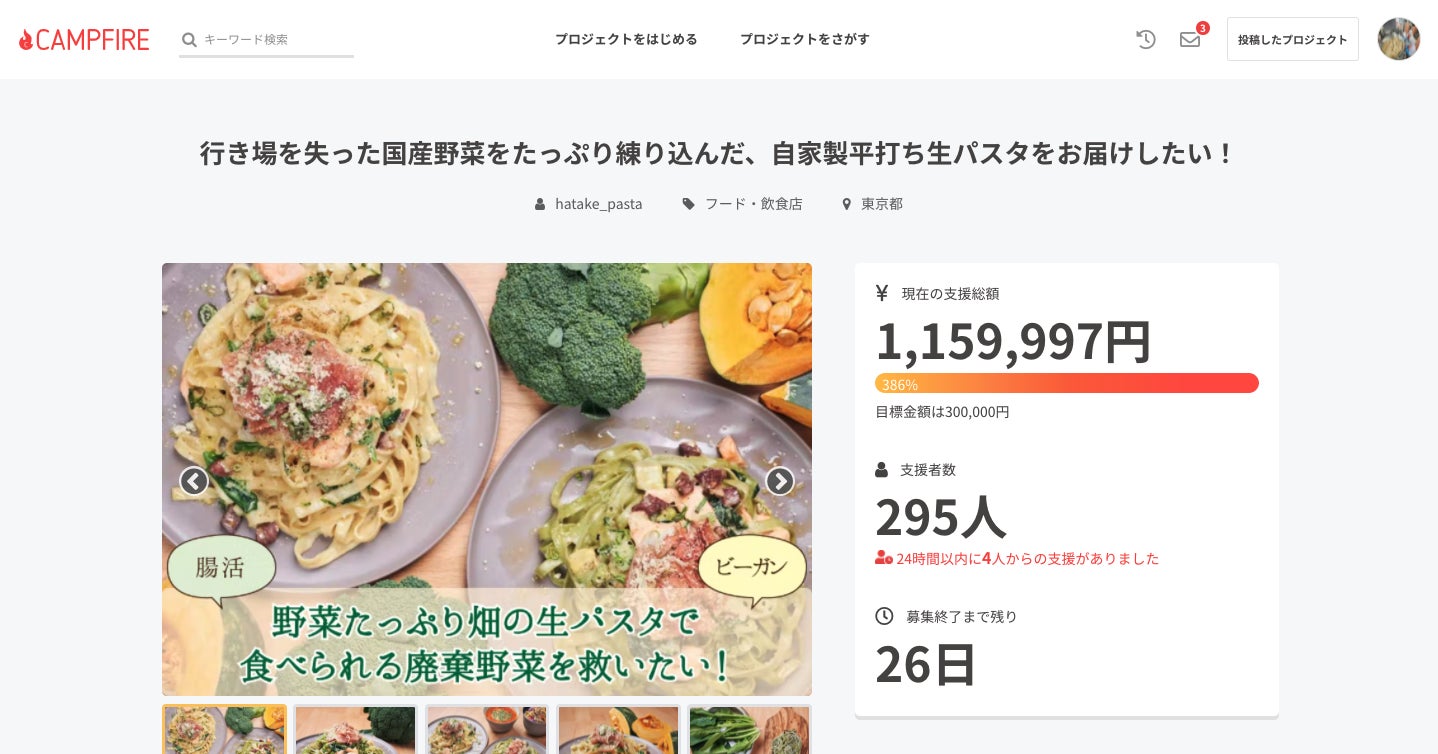 - ご支援総額100万円突破!野菜をまるごと使った生パスタのクラウドファンディング実施中