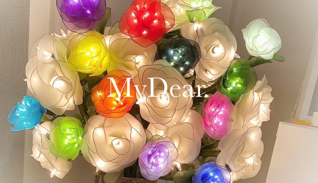 柔らかな素材であたたかみのある光りを咲かせるフラワーライトは、ギフトの演出としても、ディスプレイとしても、ご自宅用のインテリアとしても、いつもよりひとあじハッピーになれる最適な商品です。このたびMyDear.は空間装飾事業を始動致します!