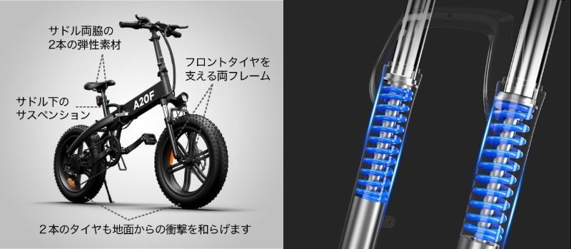 20×4INCHの極太タイヤがバイク感覚のライディングを実現!乗り心地・機動性・耐久性にこだわった折り畳み電動アシスト自転車です。