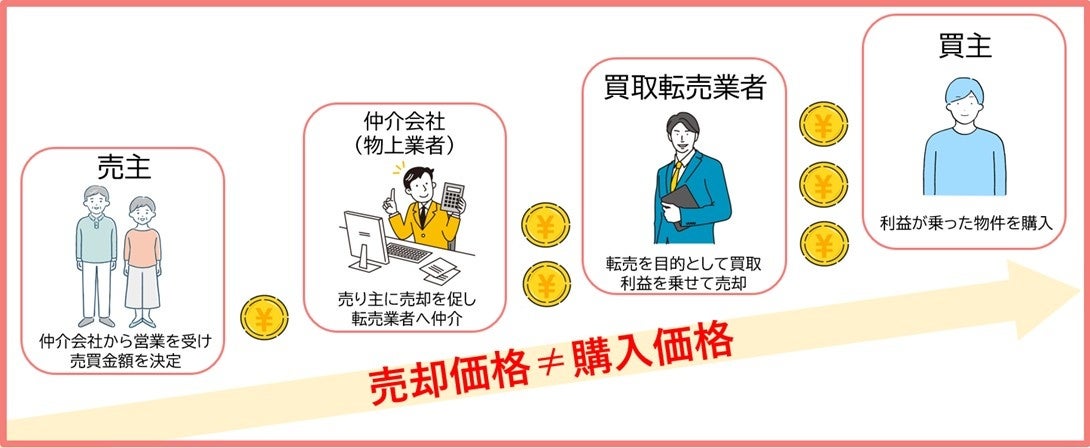 当然、業者を挟むことにより、売却価格と購入価格には乖離が生まれます。