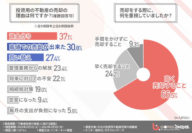 では、売却からは何が窺えるのでしょうか?まずは、売却の理由と重視した点です。