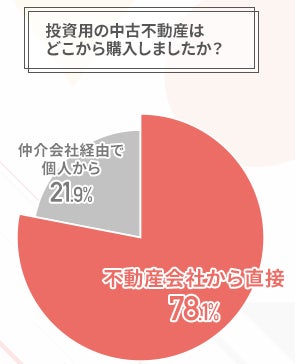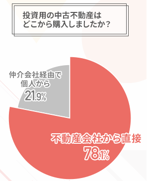 「投資用中古ワンルームマンションはどこから購入しましたか?」と質問したところ、8割近くの方が『不動産会社から直接(78.1%)』と回答しました。