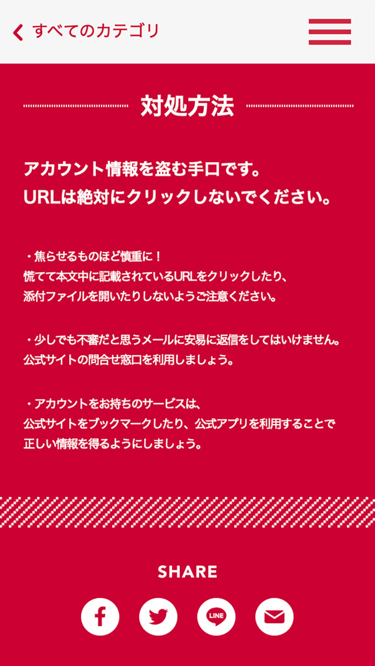 フィッシング詐欺メール等の実例を業界別や手法別にカテゴリ分けし、対策も併せて掲載。