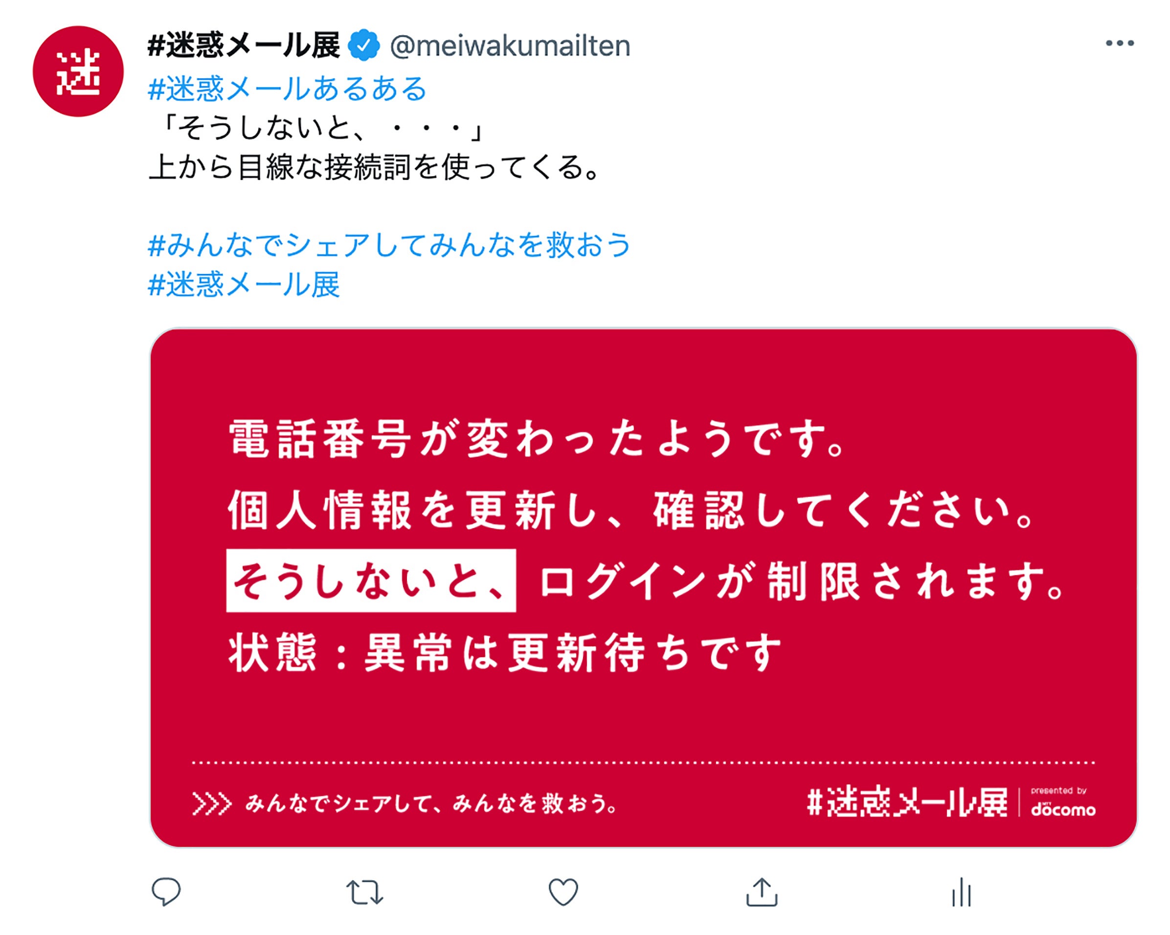「#迷惑メール展」をつけて、どうかシェアしてください。