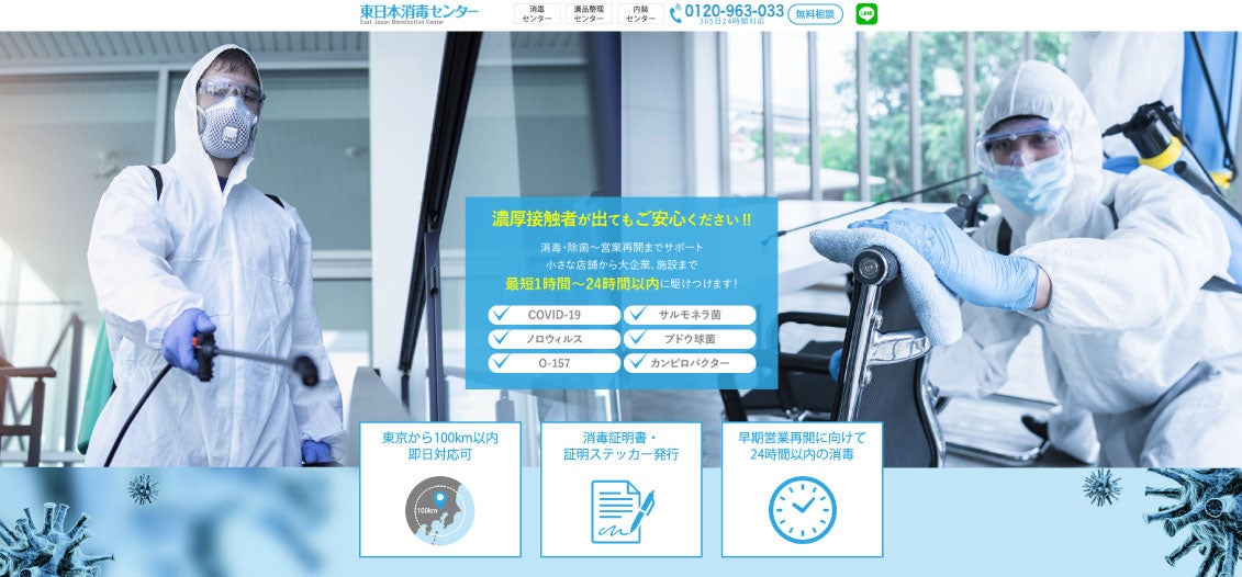 新型コロナ陽性者が発生後、お客様より直ぐにご連絡いただくことができ、6時間後に「東日本消毒センター」が出動。約3時間の消毒作業後、次の日には通常営業となりました。以後1ヶ月おきに定期消毒実施させて頂いております。お客様、当社ともに、迅速な対応を行い、被害を最小限に抑えることができました。