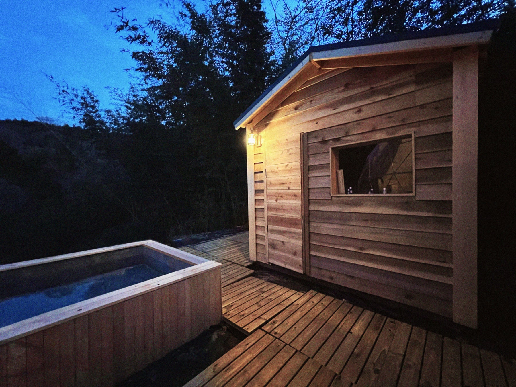 サウナ小屋は檜で作られており、木々の恵みを感じさせる香りを奏で、80℃〜110℃までお好きな温度で設定することが可能です。もちろん、ロウリュウもお楽しみいただけます。