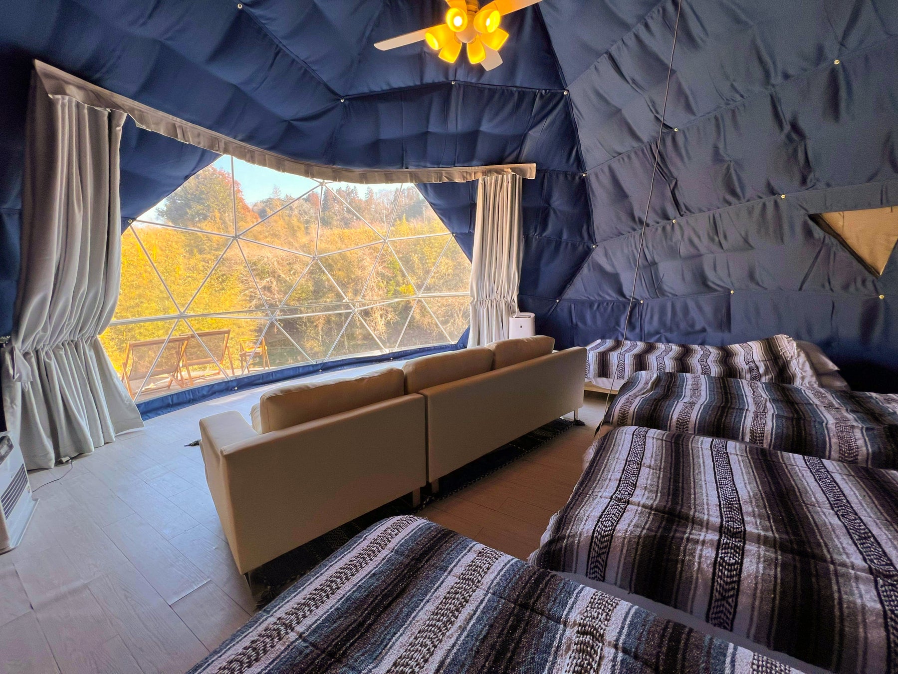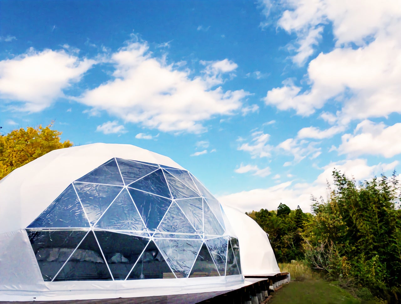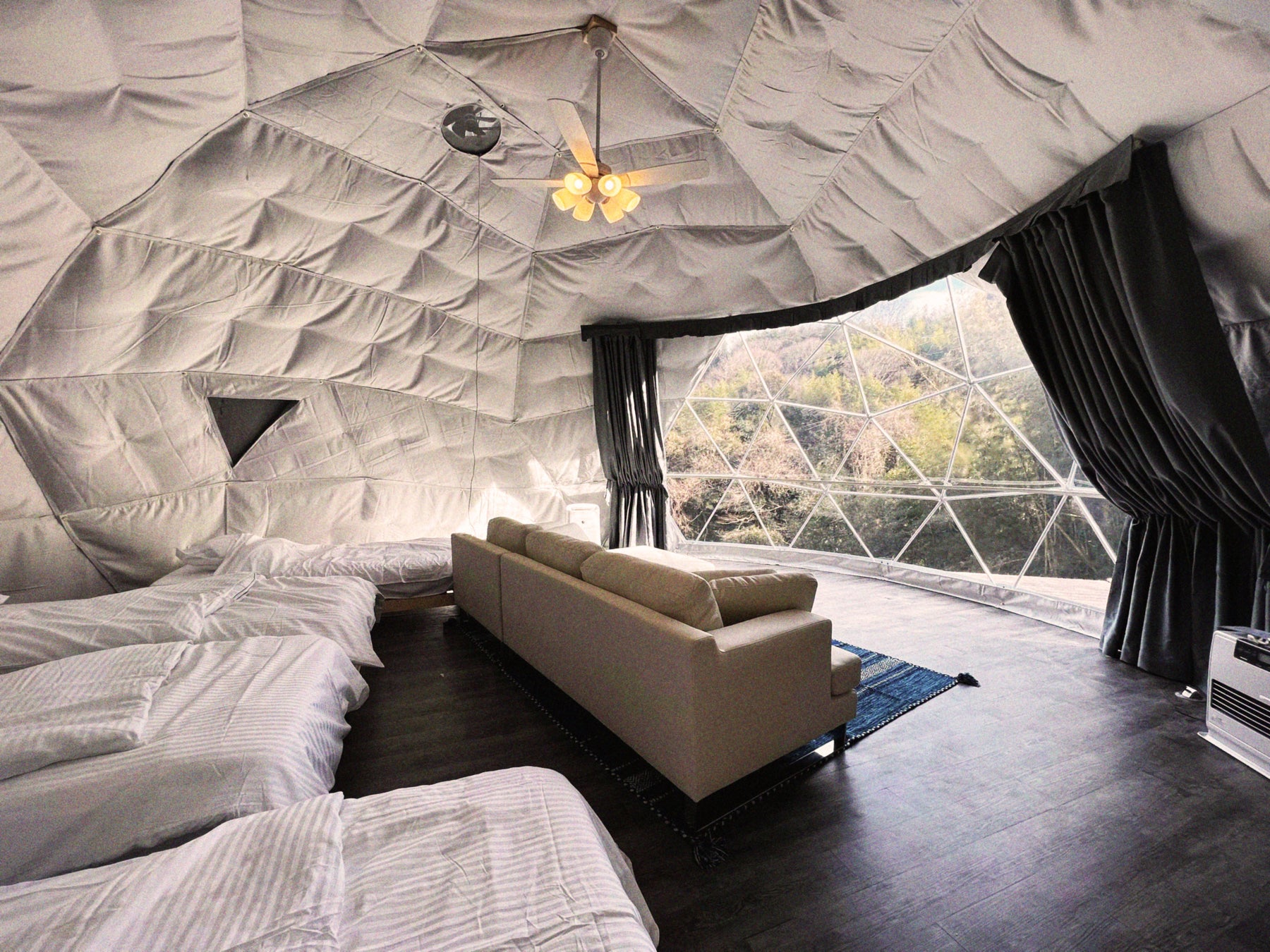ユニークなドーム型テントはこだわりのインテリアに囲まれ、広々とした空間でテントから一望できる自然を感じながら、あなただけの“別荘”を夏から冬まで快適にお過ごしいただけます。