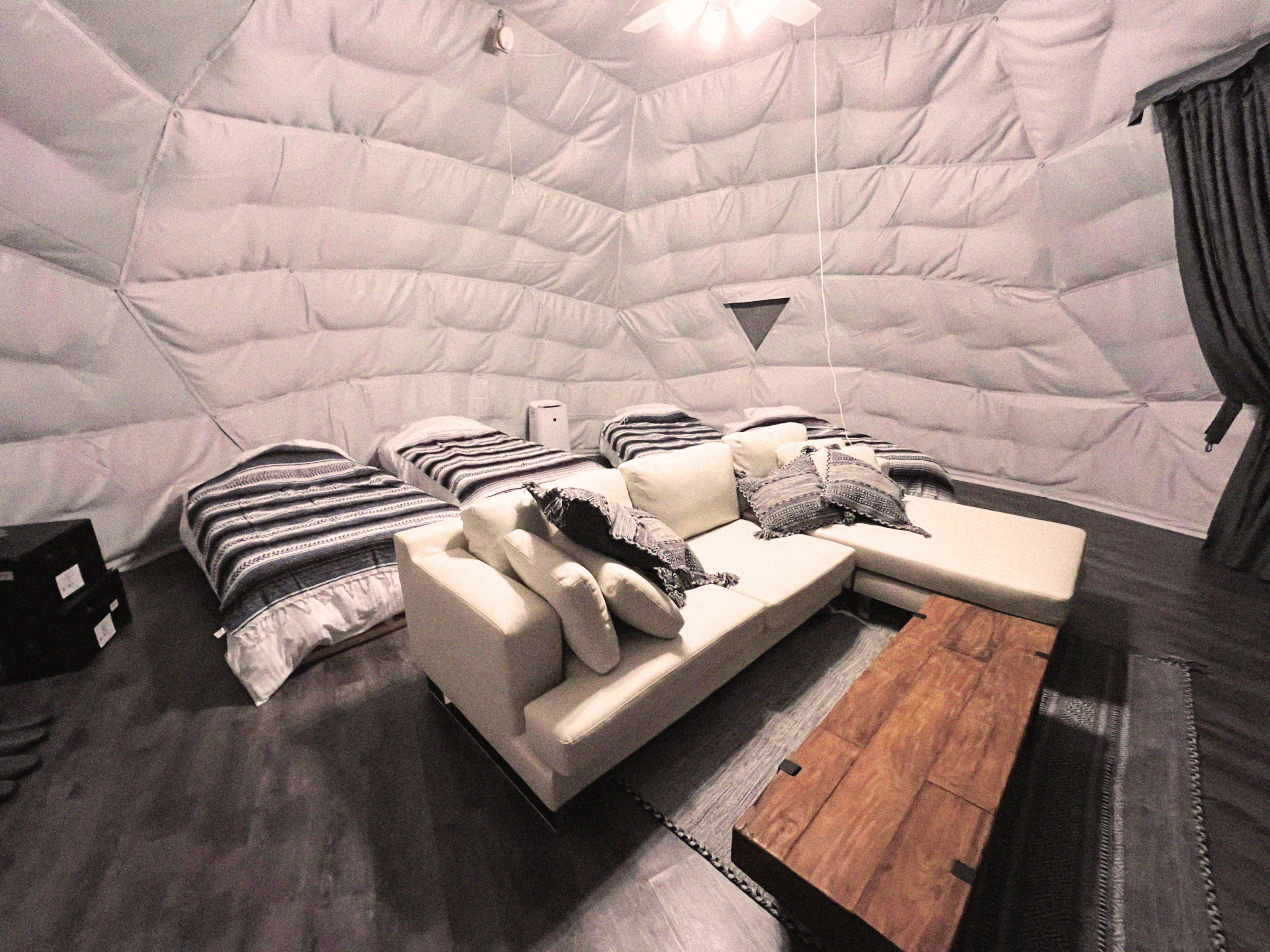 お部屋はこだわりの内装を施し、シーシャ、大型プロジェクターでのNetflixや Amazonプライムビデオ、ディズニープラス見放題とコンテンツも豊富などを完備しており、他では味わえないラグジュアリーなグランピングを体験ください。