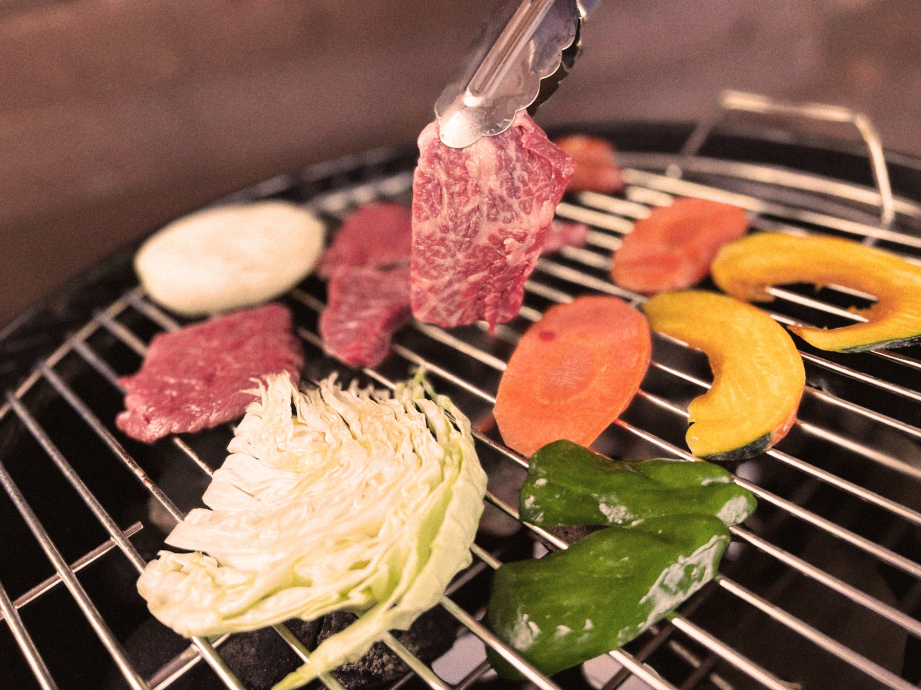 夜は特選黒毛和牛や季節の野菜を中心としたここでしか味わえないこだわりのグランピングメニューをご用意しております。