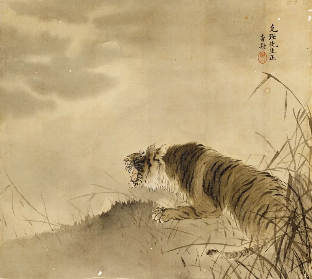 1909年に何香凝女史は日本の私立女子美術学校(現在の女子美術大学)に入学して絵画を学びました。端館紫川に師事し、山水花卉を学ぶとともに、皇室の画家である田中頼璋の下で獅子、虎などの動物画を描くために研鑽を重ねました。日本滞在中に宮崎寅蔵氏など日本の友人と親交を深め、1913年に宮崎夫人に贈った作品《菊》は、その親交の深さを歴史的に証明しています。