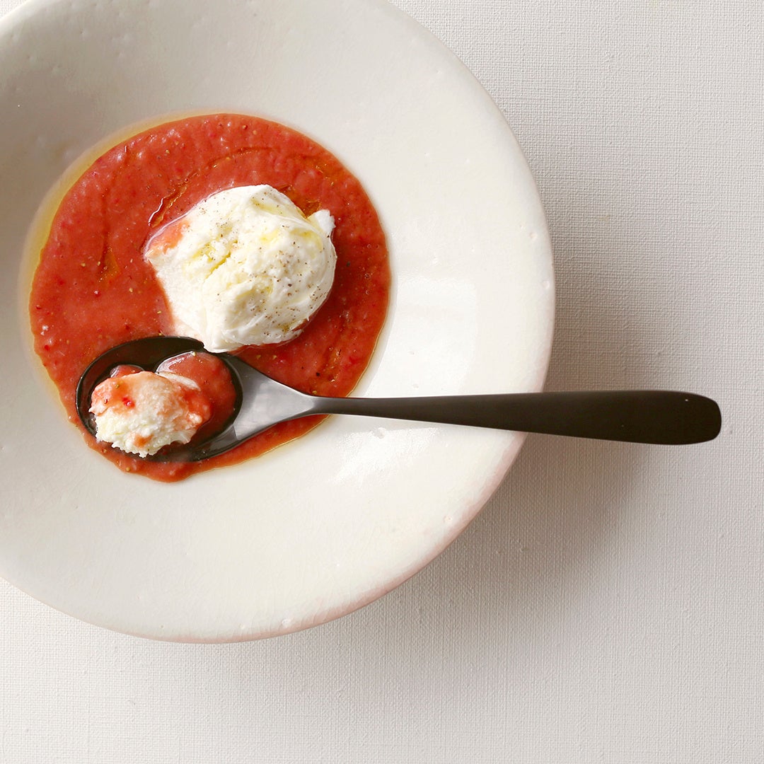 トマトと苺の冷製スープ モッツァレラチーズ添え