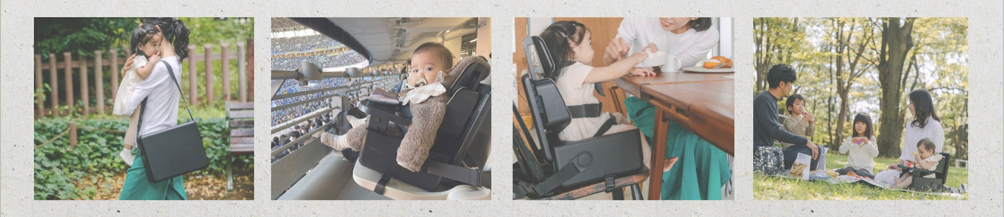 家の中はもちろん、レストラン、公園、スタジアムなど、さまざまな場所で使えて、家族の行動範囲が広がります。