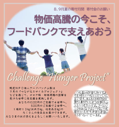 8、9月はフードバンク山梨の寄付月間 『物価高騰の今こそ、フードバンクで支えあおう!』