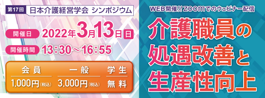 【3月13日(日)WEB開催】日本介護経営学会_第17回シンポジウム「介護職員の処遇改善と生産性向上」を開催
