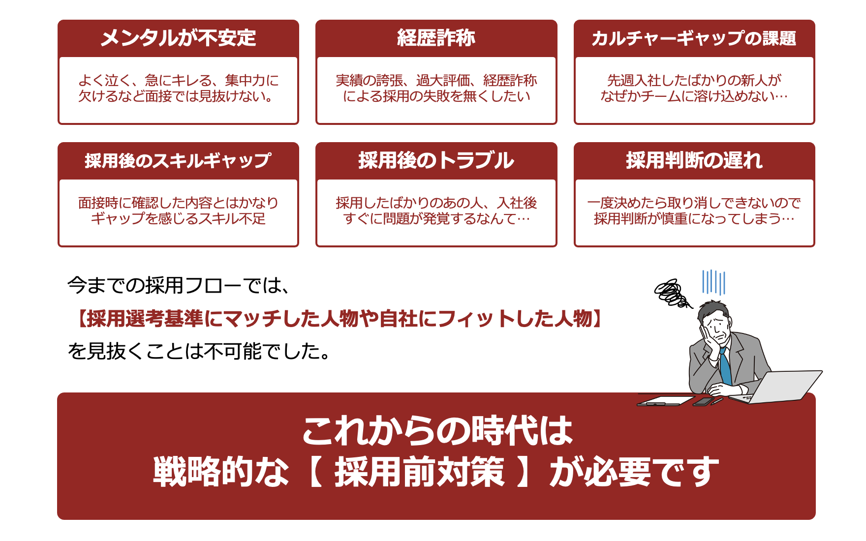 経歴、職歴、働きぶりなどの第三者評価や日常の素行など本当に自社にとって必要な人物か否かの重要な判断材料ご提供致します!特に役員や部長クラスのハイクラス人材の採用の意思決定に必要な情報です!