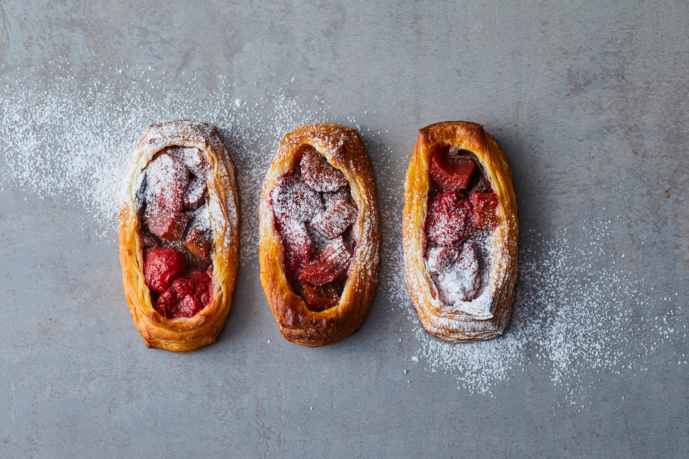 左上から)チョコメック ¥464 、ルバーブのデニッシュ ¥324、パンドミ ¥349 、左下から)渋皮つき栗と柚子のパン ¥421、クロワッサン・オ・ブール ¥216、バゲット ¥280