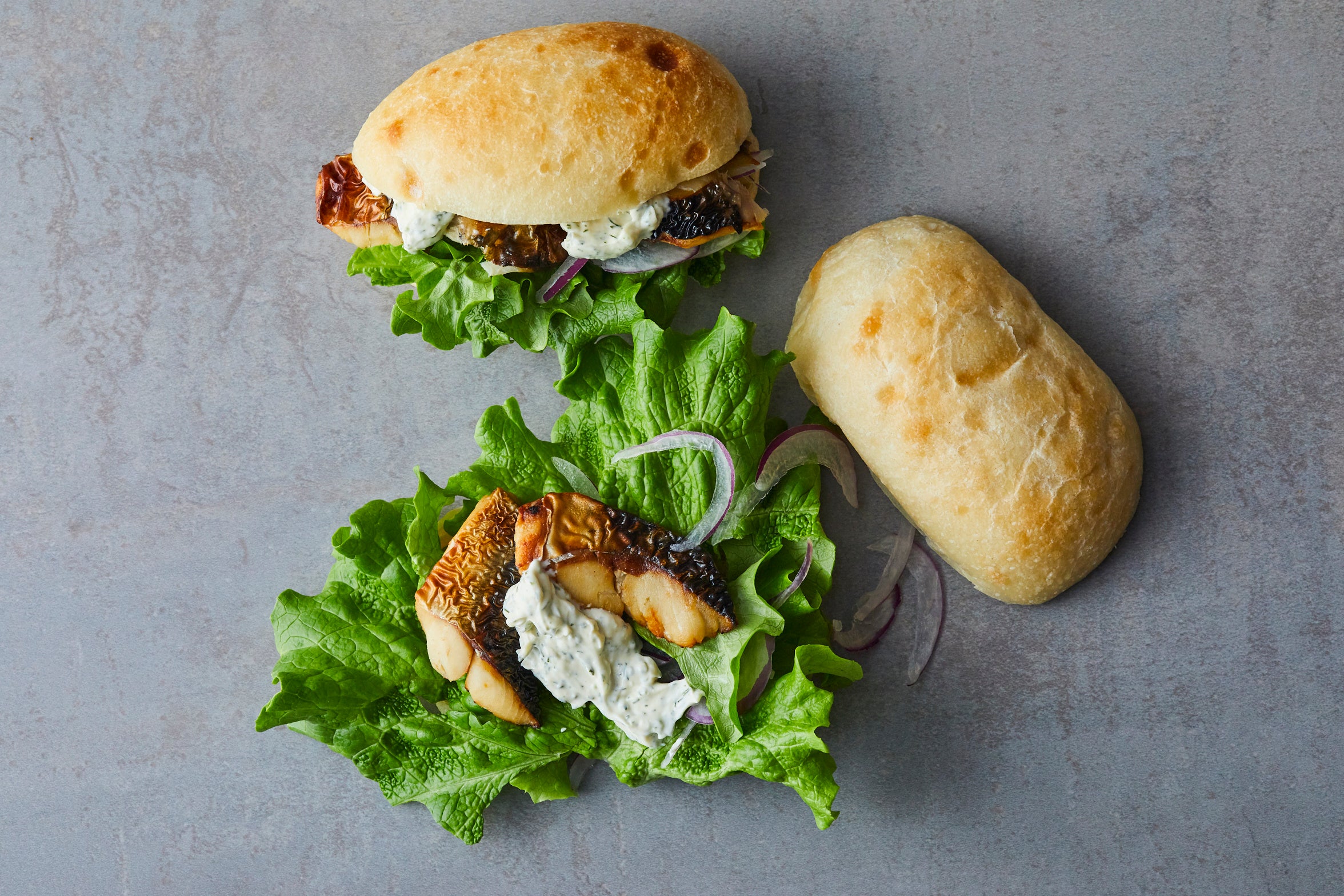 左から)トマトと北海道モッツァレラチーズ生ハム添え ¥496、サバサンド ¥496、サラダランチセット ¥660