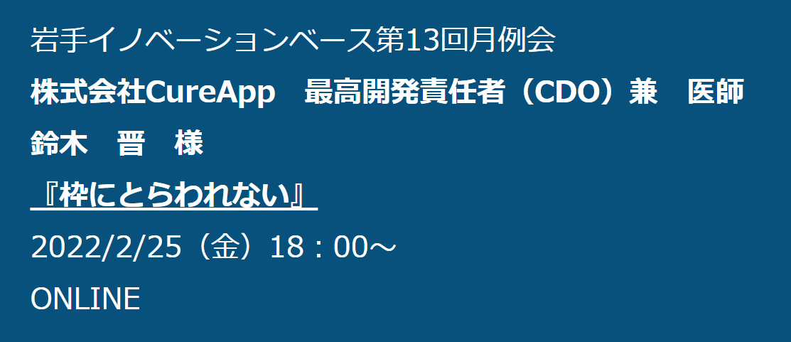 【岩手イノベーションベース】第13回月例会「枠にとらわれない」(2022/2/25(金)18:00〜@オンライン)を開催します!