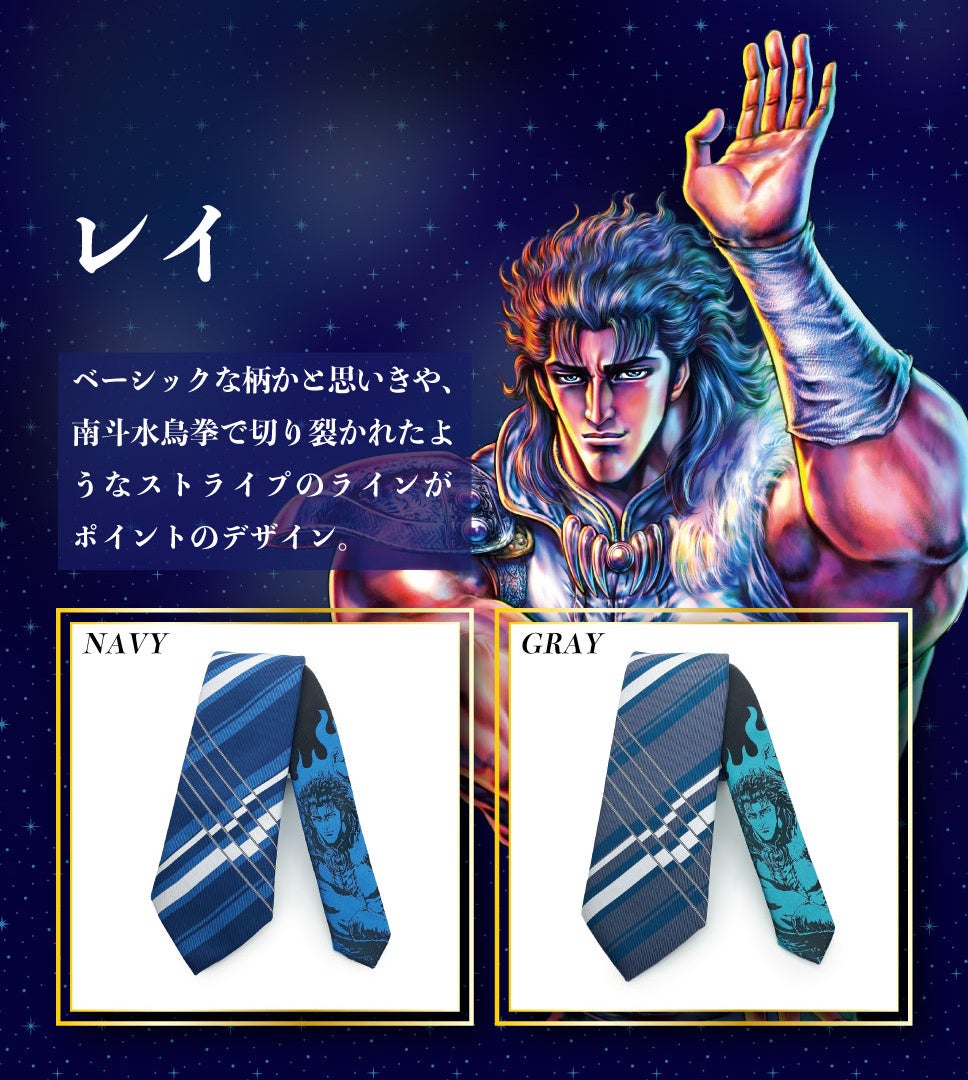 ケンシロウ、ラオウ、トキ、ジャギ、レイの5キャラでネクタイを展開中