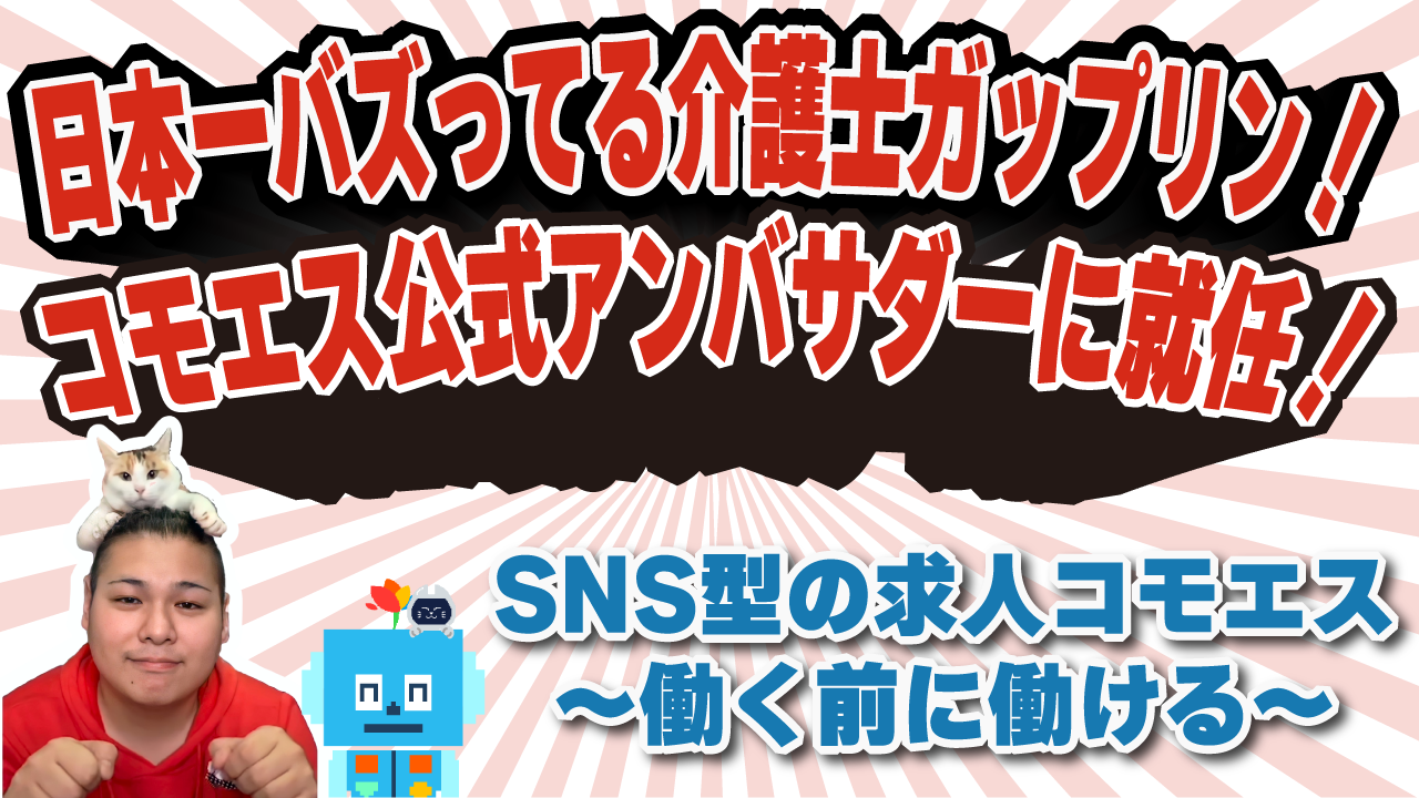 SNS型求人サイトのコモエス。私たちの想いは、採用にかかる費用や労力を削減したいという一心。グランドオープンに合わせ、日本一バズってる介護士「ガップリン」を公式アンバサダーに任命。