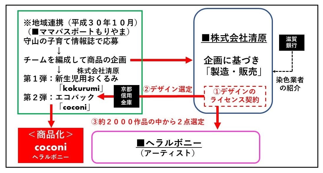 商品企画に関しては社内を中心に、株式会社ヘラルボニーや地元子育てママさんや金融機関(京都信用金庫・滋