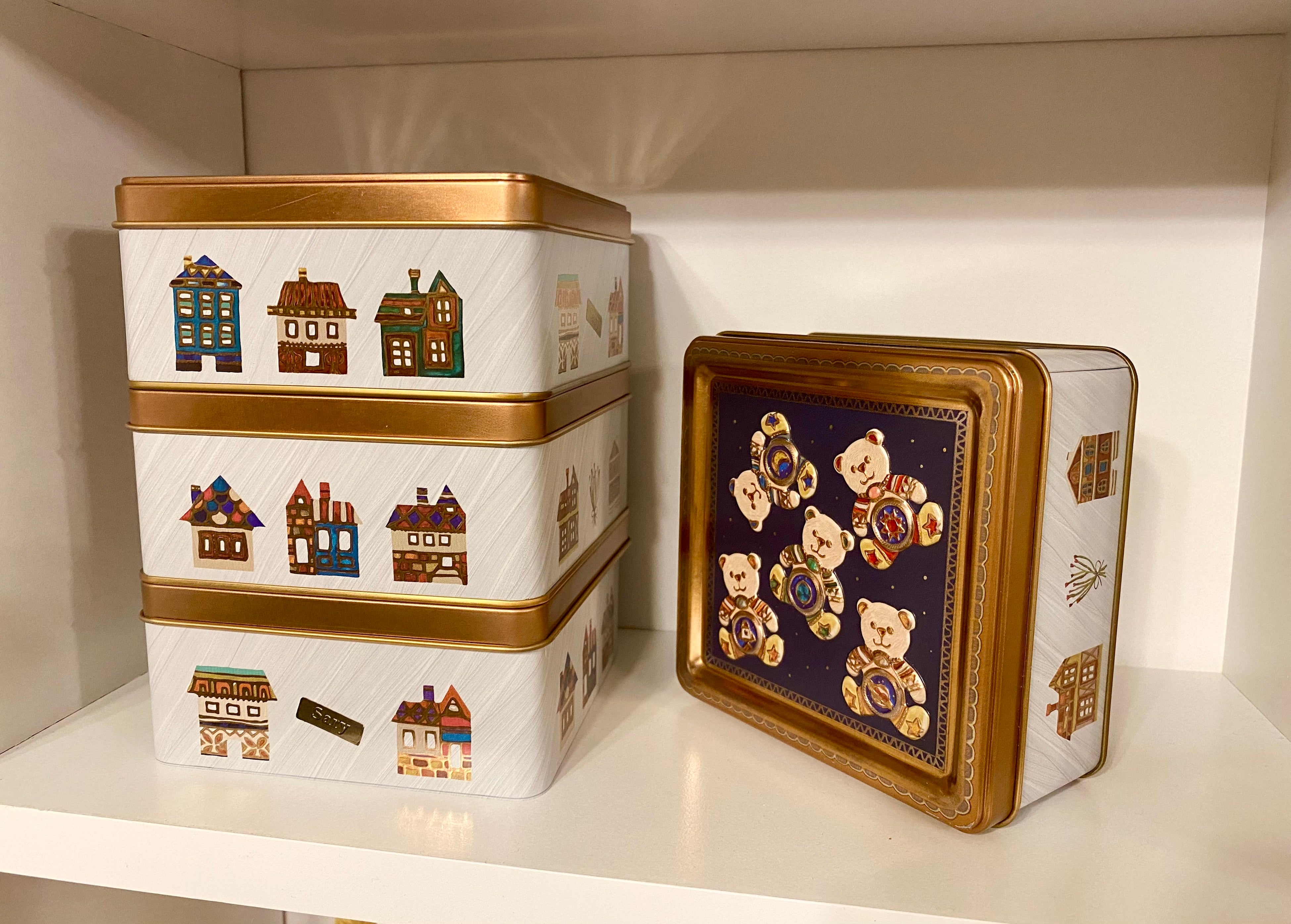 缶の側面を生かした重ねる収納も可愛いです。