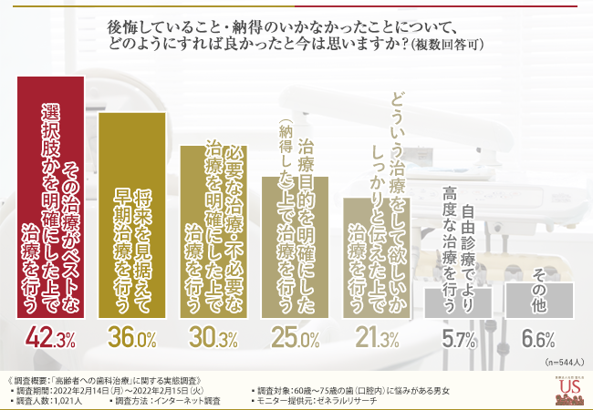 【高齢者の歯科治療に関する実態調査】歯科治療での後悔の原因は歯科医師の説明不足?しかし、治療を受ける側の歯科治療に対する意識の問題も!?